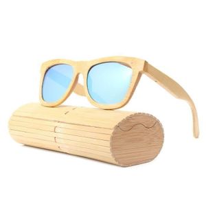 Lunettes De Soleil Bamboo Monture Bois Verres Miroirs Carrees