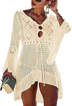 Flygo Womens Summer Beach Cover Up Bikini Swimsuit Crochet Coverups One Size Beige At Amazon Women S Clothing Store