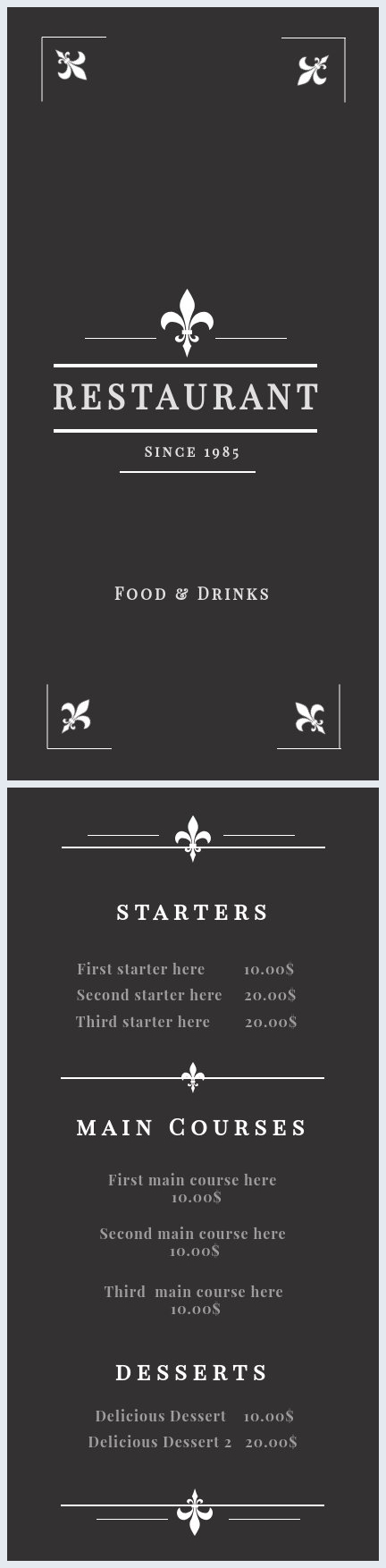 Exemple De Menu Restaurant Vertical Gratuit Impressionmenu