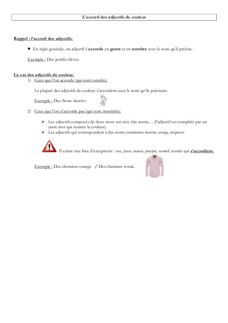 Lecon Accord Des Adjectifs De Couleur Orthographe Cm2 Orthographe Cm2 Accord Des Adjectifs Adjectifs