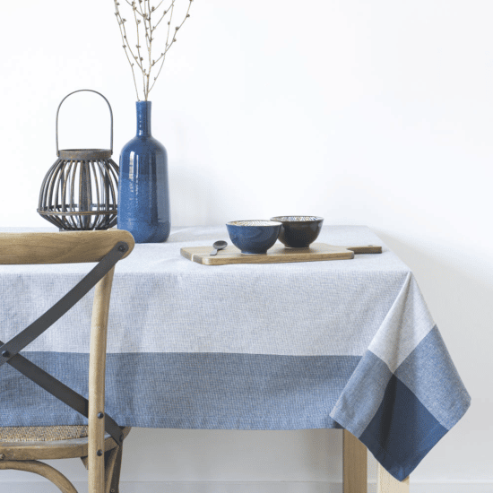 Nappe En Coton Lave Bleu 150x250 Encre Maisons Du Monde