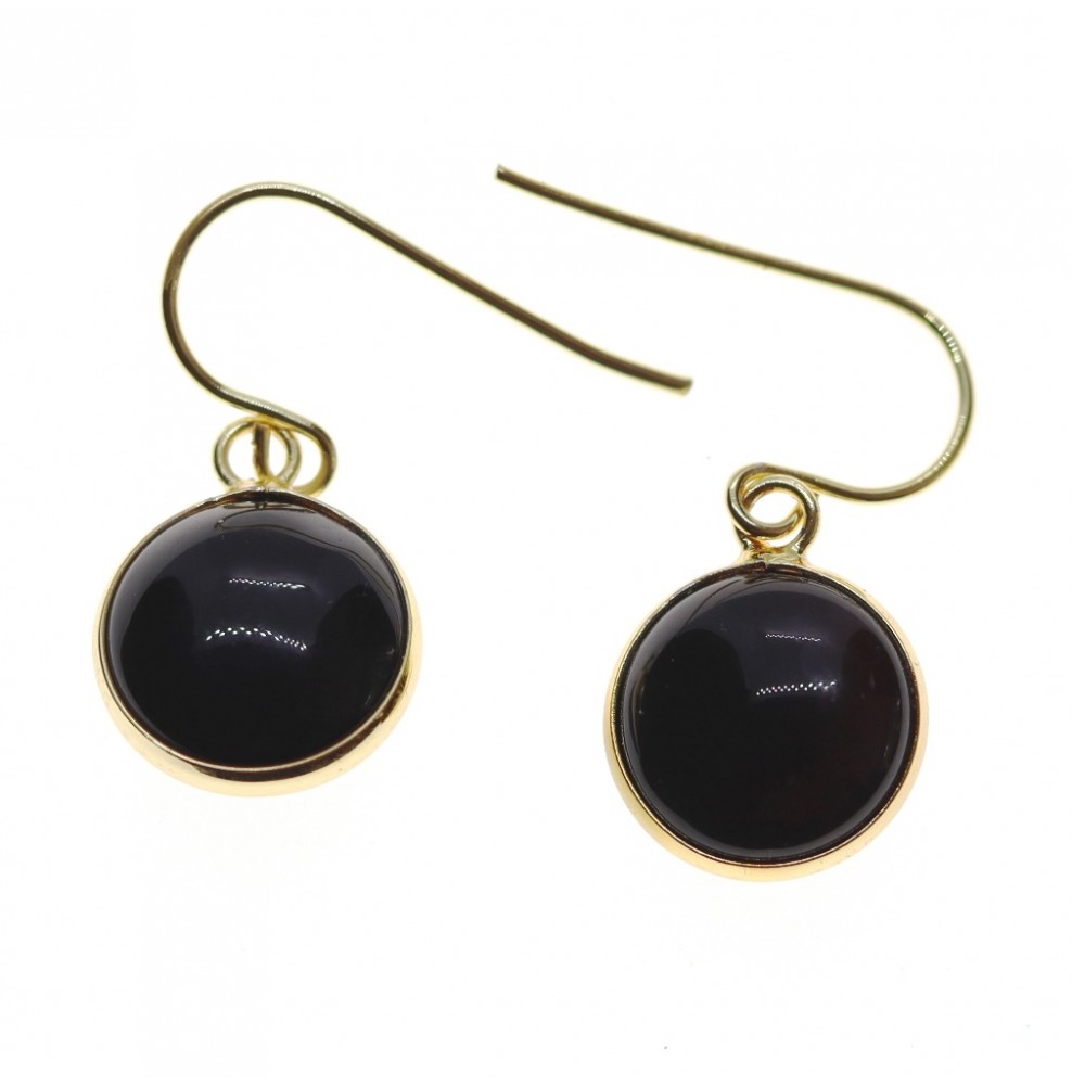 Boucles D Oreille Tendance Plate En Plaque Or Serti D Une Agate Noire