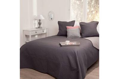 Couvre Lit Boutis Atmosphera Dessus De Lit 240 X 260 Cm Arabesque Bicolore Gris Fonce 2 Taies Darty