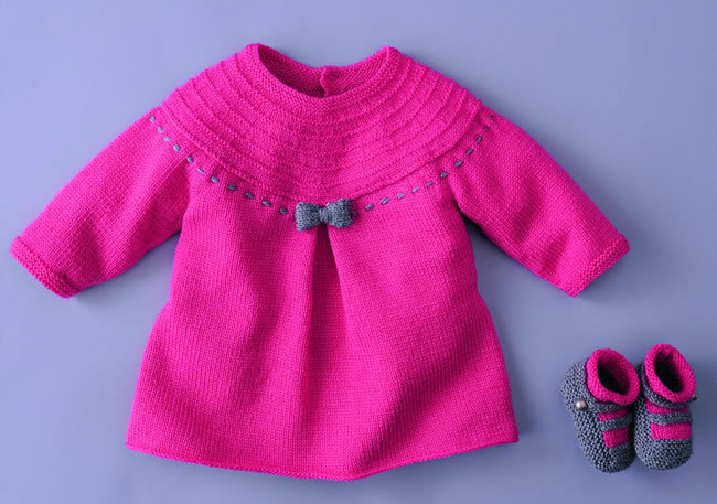 Ensemble Layette A Tricoter Robe Et Chaussons Pour Bebe En Jersey Et Point Mousse Explications Gratuites