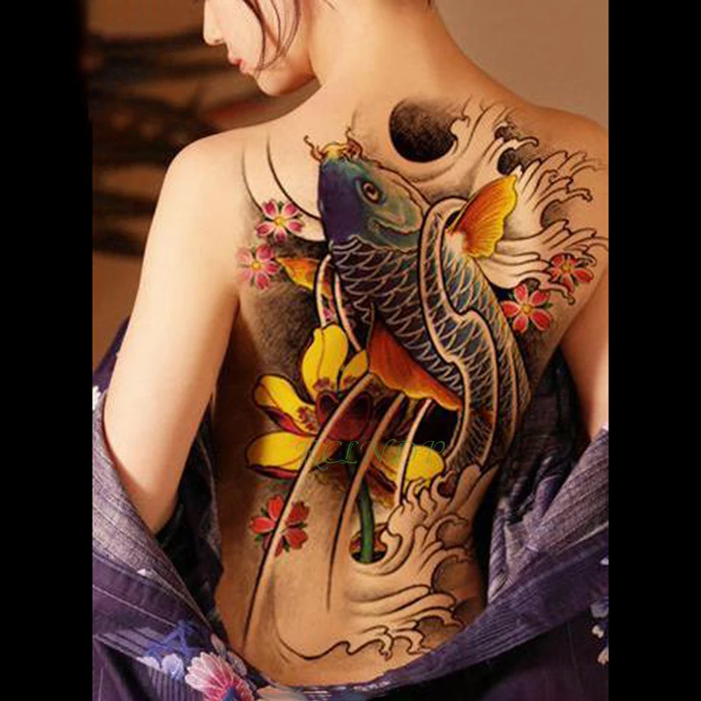 Autocollant De Tatouage Temporaire Faux Tatouage Autocollant Koi Lotus Pour Dos Entier Grand Flash Pour Hommes Et Femmes 19 Aliexpress