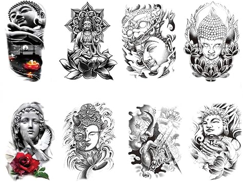 Cargen 8 Feuilles De Tatouages Temporaires Realistes Seigneur De Bouddha Auto Adhesif Autocollant De Tatouages Pour Hommes Femmes Sur Le Dos De La Poitrine Epaule Faux Tatouages Pour Les Adultes Amazon Fr Beaute Et