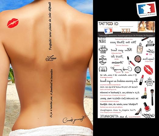 Tatouage Ephemere Temporaire Femme Phrases Citations Mots Kiss Girly Tattoo Id Xxl Hypoallergenique Fabrique En France 1 Planches 22 Cm X 14 5 Cm Amazon Fr Beaute Et Parfum