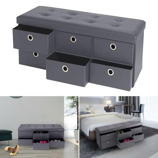 Idmarket Banc Coffre Rangement Gris 6 Tiroirs 100x38x38 Cm Pvc Banc De Lit Rue Du Commerce
