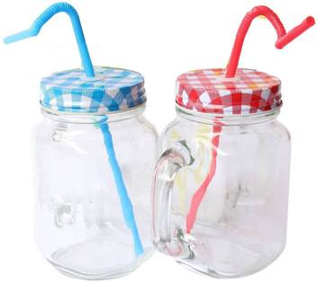 Megalite Mason Jar Combo For Drinks With Re Usable Straws 450 Ml Bottle Pack Of 2 Multicolor Glass Mason Jar Price In India Buy Megalite Mason Jar Combo For Drinks With Re Usable