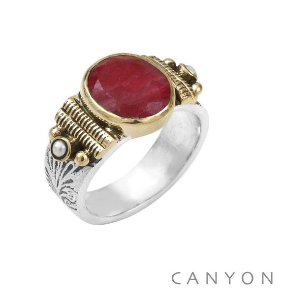 Bague Argent Bronze Pierre Noire Et Perles Bagues