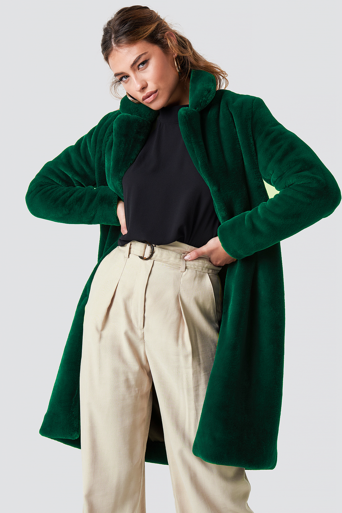 Oversized Green Faux Fur Coat Cy Boutique Silkfred Uae