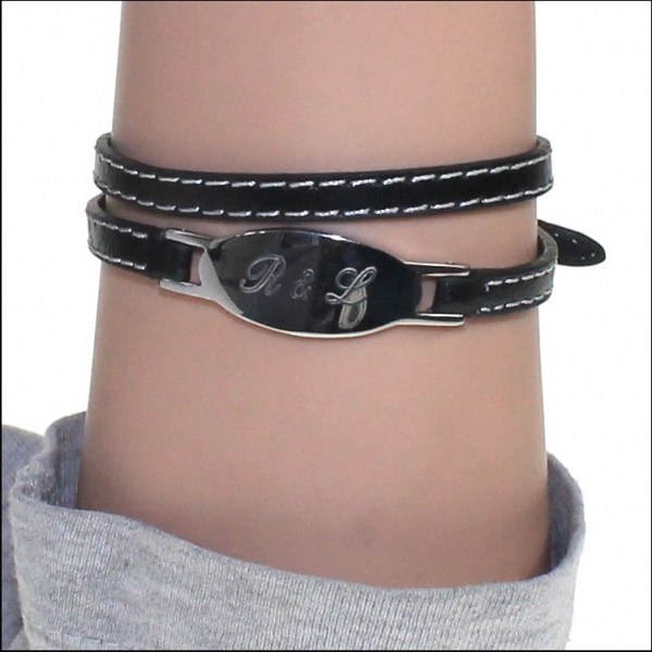 Bracelet En Cuir Personnalise Avec Medaille S Gravees Pour Femme